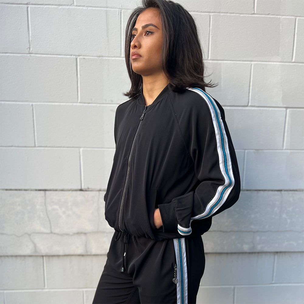 'JRae' is our day to night elegant tracksuit. Dress up or down with a simple change of shoe and accessories. The fluid movement in the fabric and the beautiful drape and stretch of the material allows for ultimate comfort.