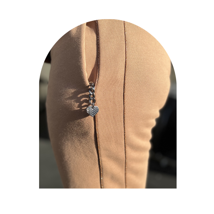 The silky soft satin lining in the pockets of all our garments as well as the inside of the Charm Vegan Leather pants takes it to another level of Luxe!